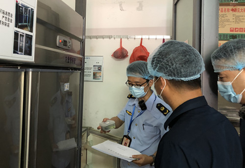 檢查組人員一行先后來到海德樂園幼兒園食堂、望牛墩多維學(xué)校食堂進(jìn)行突擊檢查,重點檢查學(xué)校食堂的證照情況,食品安全管理員的配備及管理,從業(yè)人員的健康管理,原材料采購貯存、索證索票,餐飲加工操作規(guī)范,餐飲具清洗消毒等情況。對檢查中發(fā)現(xiàn)的食品留樣不規(guī)范、配餐間雜物多等問題,執(zhí)法人員均當(dāng)場向?qū)W校食堂負(fù)責(zé)人提出了限期整改的要求。