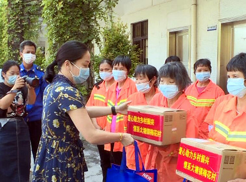 慰問中,副鎮(zhèn)長黃文進(jìn)一行為環(huán)衛(wèi)工人們送上工商聯(lián)采購的助農(nóng)產(chǎn)品和清潔用品,感謝他們?yōu)槊篮眉覉@所付出的努力,囑咐他們要勞逸結(jié)合,保重身體,提高自我防護(hù)意識,并向他們送上誠摯的中秋祝福。
