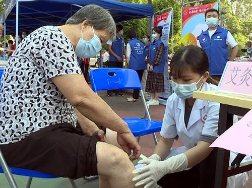 同時,工作人員還為老年人進行八錦緞教學,免費提供血壓、血糖檢測、康復科艾灸活動,以及內(nèi)科、外科、婦產(chǎn)科及中醫(yī)科問診服務(wù)。