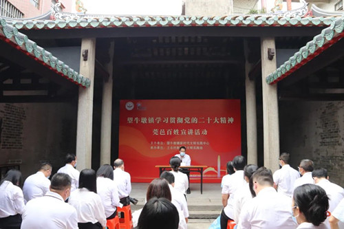 為切實(shí)增強(qiáng)做好“莞邑百姓宣講”工作的責(zé)任感和使命感,推動(dòng)黨的二十大精神在基層落地生根,11月21日上午,由望牛墩鎮(zhèn)新時(shí)代文明實(shí)踐中心主辦、上合村新時(shí)代文明實(shí)踐站承辦的學(xué)習(xí)貫徹黨的二十大精神莞邑百姓宣講活動(dòng)走進(jìn)上合村恒慎陳公祠。