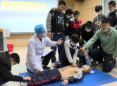隨后,同學們在醫務人員的指導下進行了實操演練,更好地掌握心肺復蘇的操作程序。