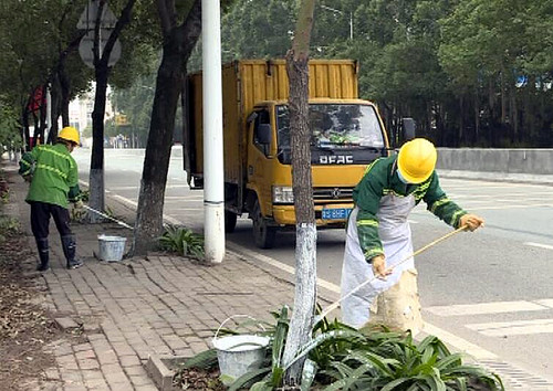 記者在北環路、文化廣場等地看到,望牛墩鎮市政園林綠化工作人員正仔細地為樹木刷石灰水,他們遵循“顏色均勻、整齊劃一”的涂白要求,將石灰水均勻涂抹于樹干上,為每一棵樹都刷上定制的“保護層”。據工作人員介紹,這樣做不僅可以幫助樹木防寒抗凍,更主要的原因是,樹木的樹皮和縫隙被石灰水填補完畢后,有害的寄生蟲難以進入到樹皮里面進行產卵,可以大大降低蟲口的密度,為來年春季的病蟲害防治打下好的基礎。