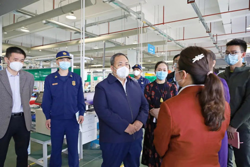 吳潤玲一行先后前往東莞凱德新能源有限公司、東莞市兆威機電有限公司、東莞市卓藍自動化設備有限公司等企業,每到一處,都深入車間、看產品、問經營,詳細了解企業生產經營、復工復產、企業員工返崗率、用工缺口等情況,聆聽企業發展規劃以及需要政府幫助協調解決的問題。
