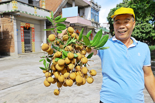 走進李屋村,一河兩岸成排的龍眼樹成了該村亮麗的風景,村民正頂著烈日忙著采摘果實,或爬到樹上,或站在樹下,分工合作忙得不亦樂乎。