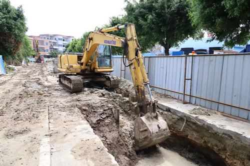 據(jù)施工方介紹,為確保正常施工、保證市民人身安全,目前是對(duì)施工區(qū)域臨時(shí)分階段封閉兩車道,車輛仍然正常通行。目前,工程正在破除舊路面、打鋼板樁和挖管槽、預(yù)埋管道等。
