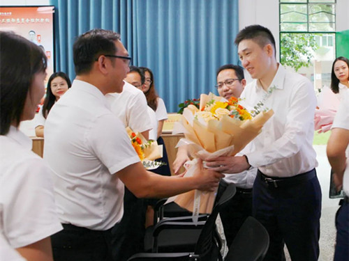 本次慰問活動,梁志豪、莫獻來分別向望牛墩鎮(zhèn)退休教師、從教30年教師、支教教師,韶關(guān)曲江、貴州銅仁到望牛墩鎮(zhèn)跟崗教師、班主任(教師)代表等贈送了鮮花,為他們送上節(jié)日的祝福和問候,對他們?yōu)橥6真?zhèn)教育事業(yè)作出的積極貢獻表示感謝,并與他們親切交談,詳細了解校園建設(shè)、教師隊伍建設(shè)、教學管理等方面情況。