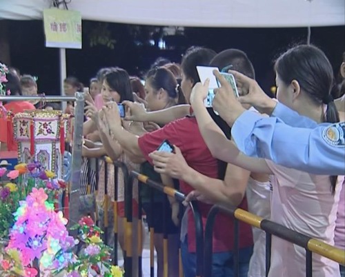 實(shí)習(xí)記者林宇婷:記者現(xiàn)在在我鎮(zhèn)文化廣場(chǎng)的貢案展區(qū)這里,在這里可以看到,現(xiàn)場(chǎng)是非常多人的,而且在每個(gè)貢案的前面都逼爆人,有些是三五知己,有些是一家人一起過(guò)來(lái)看嶺南文化奇葩,如果不是親身站在這里,是絕對(duì)不可以想象我鎮(zhèn)七夕文化活動(dòng)是有爆發(fā)如此大的魅力。