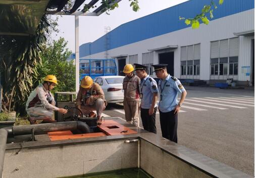 第二階段,中集公司立即啟用本公司應(yīng)急預(yù)案,立即關(guān)閉儲存罐閥門和關(guān)閉雨水閥門,打開應(yīng)急池閥門,并立即撥打鎮(zhèn)生態(tài)環(huán)境分局和鎮(zhèn)應(yīng)急管理分局值班電話。隨即,鎮(zhèn)生態(tài)環(huán)境分局和鎮(zhèn)應(yīng)急管理分局趕到現(xiàn)場后,用沙袋和吸油棉等環(huán)境應(yīng)急物資對泄漏源進(jìn)行封堵。并指揮中集公司使用抽水泵從雨水管網(wǎng)將部分廢水抽至空的儲存罐,另一部分廢水流入應(yīng)急池。現(xiàn)場指揮部指揮第三方監(jiān)測公司對中集公司的雨水排水口、污水井末端和東面河涌下游開展應(yīng)急水質(zhì)環(huán)境檢測,并對東面河涌進(jìn)行臨時緊急封鎖。
