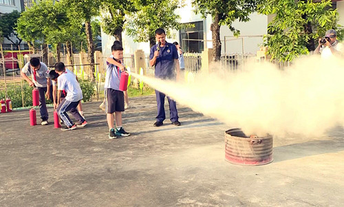 學生1:我學到了怎樣使用滅火器,(知道)滅火器有很多種類,我們也要選擇合適的(滅火)方法,然后用滅火器的時候一定要小心,逃生的時候我們一定要蹲下身。