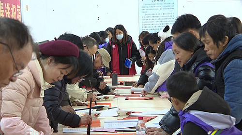 記者在現場看到,群眾們有序排隊,認真挑選自己喜歡的對聯,或找書法家“私人定制”,書法家根據群眾的不同需求,揮毫潑墨,筆走龍蛇,一筆一劃專注地寫下對即將到來的龍年的期盼與祝福,形成相互配合、其樂融融的活動場景。
