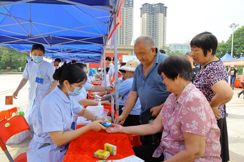 市民:剛剛我在這邊測了,先測了血壓,然后又測了血糖,這個都很好,醫生給我講解的很詳細,知道吧又很耐心,白衣天使們辛苦了,謝謝你們!