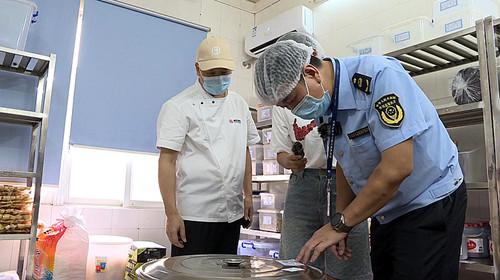 在“一起查餐廳”活動環節,檢查組對望牛墩鎮中考供餐學校食堂食品安全公示、食品儲存、食品加工過程管理、食品留樣、索票索證制度、餐用具清洗消毒、臺賬記錄等落實情況進行檢查,針對在檢查中發現存在的問題,執法人員已當場督促食堂管理方限期進行整改落實,切實保障中考期間全鎮師生飲食安全。