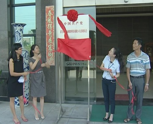 鎮委委員陳艷芬、鎮組織人事辦主任梁麗英一行首先參觀了東莞市貝司通橡膠科技有限公司,詳細聽取該公司的相關情況介紹并共同為該公司黨支部成立舉行了揭牌儀式。