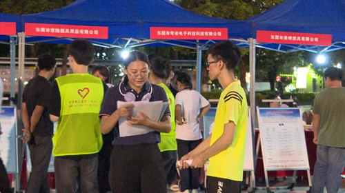 當晚,來自望牛墩鎮東莞市鴻富瀚科技有限公司、東莞凱德新能源有限公司、東莞市兆威機電有限公司等42家用工企業紛紛“曬”出薪酬、補貼等各類福利吸引人才,提供就業崗位1200多個。求職者在招聘攤位前閱讀招聘信息,了解崗位需求,有意向的求職者認真與企業HR溝通,詳細了解企業薪資及發展情況。