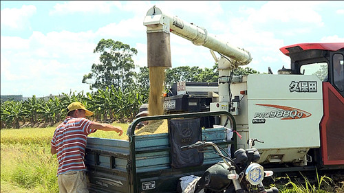 據朱平沙農戶鄒先生介紹,為了增產增收,不誤農時,今年他采用了錯峰種植和收割,種植了莉香占和三澳占兩個品種的水稻約100畝。目前收割的是莉香占,三澳占的收割期將晚一個月左右。他對今年早造水稻的產量和品質都比較滿意,預計畝產有800多斤。