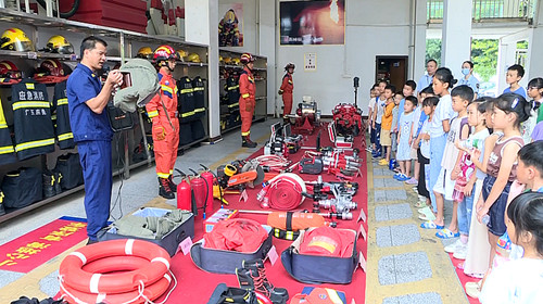 活動中,孩子們在消防員的帶領下,共同認識了消防戰斗服、消防腰斧、空氣呼吸器等消防工作裝備,消防員就如何正確預防火災事故、如何進行火場自救逃生,各類滅火器、防煙面罩等消防產品的使用方法及注意事項進行詳細講解,讓孩子們了解火災的危害性,初期火災撲救、火場逃生和發生火災時的一些應對措施。小朋友們積極參與互動環節,真正過了一把“消防癮”。