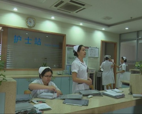 望牛墩醫(yī)院護(hù)士長(zhǎng)李婉青:兩邊分兩組,這里一般情況是25張床設(shè)一個(gè)工作站,那邊是20個(gè)張?jiān)O(shè)一個(gè)工作站,兩個(gè)工作站,床邊工作站我們主要負(fù)責(zé)病歷的輸血,病人入院那些東西,大小便,還有護(hù)理注入單,體溫,我們都會(huì)在這里做,因?yàn)榭拷∪耍惺裁词挛覀兌际呛芊奖悖挥米o(hù)士在那里拿東西,還有這個(gè)治療車(chē),我們打針的時(shí)候也是很方便,有什么病人走了,或者有什么問(wèn)題需要治療車(chē),我們馬上可以到位了。