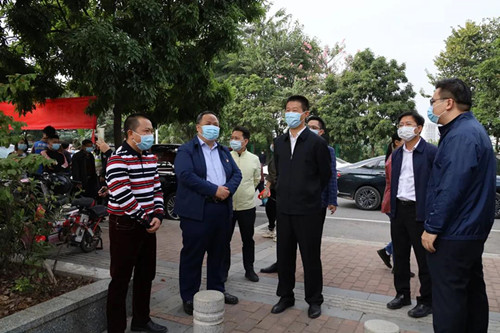 王長青、吳潤玲一行先后前往望牛墩中學、望聯村、永聯彈力織物有限公司核酸檢測點,詳細了解檢測點現場環境布置、人員安排、采樣流程、秩序維護、防疫措施等情況。