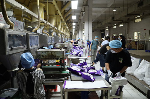 記者走進位于望牛墩鎮(zhèn)的東莞市立頓洗滌用品實業(yè)有限公司(下稱“立頓洗滌”)看到,近3米高的貨架上整齊堆放著封裝好的產(chǎn)品、工人駕駛著拖車將貨物與材料運轉到各個車間、車間員工有條不紊地在生產(chǎn)線上忙碌……園區(qū)內一片熱火朝天的忙碌景象。