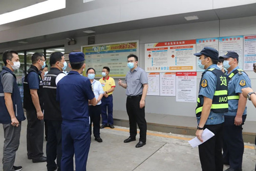 隨后,植旭明率聯合檢查組一行,前往望牛墩鎮官派加油站和東莞市東偉石油化工有限公司,通過現場實地檢查和查閱臺賬資料等方式,對企業的疫情防控和安全生產工作進行詳細檢查。