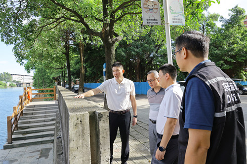 梁志豪一行先后前往望牛墩鎮(zhèn)洲灣石頭村、下漕官派村民小組新水閘、五涌村前河堤等重點(diǎn)防汛位置,通過實(shí)地查看、聽取匯報等方式,詳細(xì)檢查河堤堤頂、堤坡、路面等有無破損情況,以及水閘運(yùn)行、水利設(shè)施維護(hù)等情況,重點(diǎn)了解堤圍管理、地質(zhì)災(zāi)害防范、積水點(diǎn)應(yīng)急處理等措施落實(shí)情況。