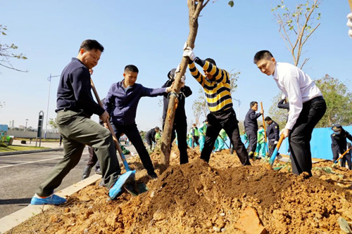 植樹現場,大家熱情高漲、揮灑汗水,放苗扶樹、揮鍬填土、踩土固苗、提水灌溉,充分發揮了“奉獻、友愛、互助、進步”的志愿精神,現場碌有序,經過大家努力,共完成40棵樹苗種植工作。
