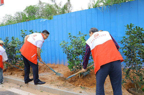活動現場,一片熱火朝天的植樹景象,扶樹定根、揮鍬填土、踩實固苗,大家分工有序、干勁十足,合力種下了一株株彰顯社會各界熱心公益事業、體現團結合作的“同心樹”。經過大家的共同努力,新栽種的360棵桂花樹錯落有致,迎風而立,為春天增添了一抹新綠。