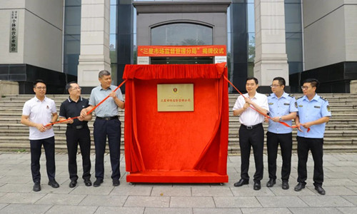 市市場監督管理局三級調研員趙書嶺,鎮人大主席莫獻來,鎮市場監管分局全體工作人員參加了揭牌儀式。共同為望牛墩市場監管分局“三星市場監督管理分局”揭牌。