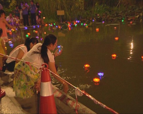 新莞人龐麗萍:因為我聽別人說放河燈可以祈福嘛,想放個河燈給我朋友或者是我家人祈來一個安康。