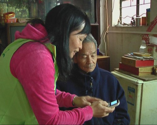鎮居家養老社工 張見文:前階段2015年是第二批居家養老平安鈴發了259個,那些老人有些可以走的老人都帶過去飲茶都好歡喜有平安鈴,又可以用平安鈴同其子女溝通,有什么事又可以找子女;一些行動不便的老人,利用平安鈴,又試過有老人跌倒的用平安鈴救他的,他打去總臺,就算他講不出聲,總臺都會找到其子女,因為我們就做這個服務之前,收集各個服務對象子女、親人的電話,將其輸入總臺那里,直撥平安鈴就可以聯系到其家里人。