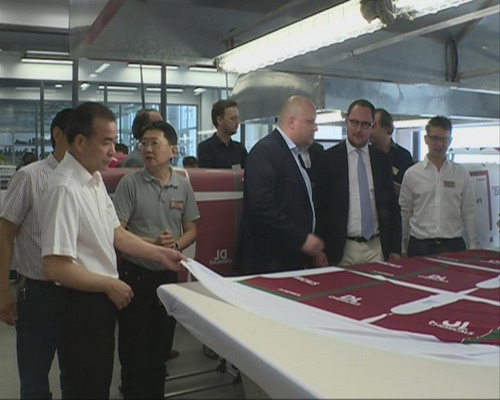 在東莞市葛天那鞋袋制造有限公司,鎮(zhèn)委書記、鎮(zhèn)人大主席簡任昌在鎮(zhèn)委委員袁樹堅及鎮(zhèn)外經(jīng)、黨政等有關(guān)部門人員的陪同下,會見了來自比利時科特賴克城市市長奎肯伯恩以及東莞市葛天那鞋袋制造有限公司比利時總部負(fù)責(zé)人一行,雙方首先深入到企業(yè)的設(shè)計研發(fā)中心、產(chǎn)品展覽廳及生產(chǎn)車間進(jìn)行實地查看,詳細(xì)了解企業(yè)的生產(chǎn)經(jīng)營情況。據(jù)悉,東莞市葛天那鞋袋制造有限公司位于我鎮(zhèn)牛頓工業(yè)園,公司的投資總額為18335萬港元,注冊資本11300萬港元,主要生產(chǎn)和銷售各種鞋、袋、衣服等產(chǎn)品,并出口歐美等地,目前公司已設(shè)立了研發(fā)機(jī)構(gòu),研究開發(fā)鞋、紡織品等。