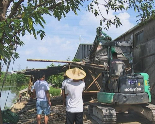 行動中,副鎮長林鵬飛率隊先后去到五涌、下漕、橫瀝、福安等村,首先約談了非法養豬場負責人,擺明了其非法養豬的事實和危害,要求其迅速進行整頓清理,相關部門將依法予以強制拆除,在對其進行思想教育和宣傳工作后,對方表示認同。執法人員現場對該養豬場進行了調查取證并作檢查后,各個非法養豬場在大型鉤機、開鑿機巨大臂彎的揮動下,被一一清除干凈。