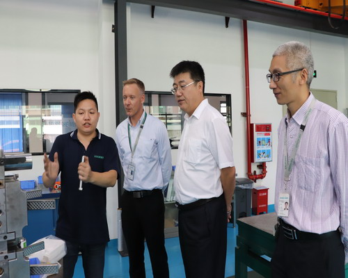 副市長李德喜一行在鎮委委員植旭明等人員的陪同下先后實地參觀了東莞中集專用車有限公司、格雷斯海姆塑膠制品(東莞)有限公司,深入到企業的生產車間、產品展示廳,向企業負責人詳細了解企業的生產經營、研發創新、開展“倍增計劃”和在經營過程中遇到的實際困難等情況。李德喜在調研中充分肯定了望牛墩鎮近年來在產業發展、服務企業等方面做出的成績,他鼓勵企業要不斷提高科技創新水平,不斷整合資源,優化產業結構,大力實施創新驅動和“倍增”計劃,努力加快發展步伐。