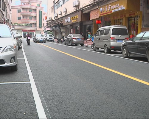 記者在現場看到,從東莞銀行至鎮中心球場等路段已經鋪好瀝青,在路面上劃有標線及停車位,道路變得干凈整潔。