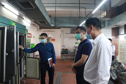 隨后,梁健陽(yáng)率檢查組一行前往望牛墩中學(xué)、育林學(xué)校等轄區(qū)內(nèi)的公、民辦中學(xué)進(jìn)行實(shí)地督導(dǎo)檢查。每到一處,檢查組都嚴(yán)格對(duì)標(biāo)對(duì)表,從學(xué)校組織管理、校園環(huán)境設(shè)施管理、物資保障、人員管理、教育培訓(xùn)、應(yīng)急處置準(zhǔn)備等六大方面,詳細(xì)檢查學(xué)校入口檢測(cè)點(diǎn)、校車管理、學(xué)校食堂的通風(fēng)和清潔消毒措施、臨時(shí)觀察室和醫(yī)務(wù)室的設(shè)置、清潔消毒和防護(hù)用品的儲(chǔ)備、應(yīng)急演練的落實(shí)等情況,全面了解學(xué)校在疫情防控工作中采取的措施、應(yīng)對(duì)方法等。