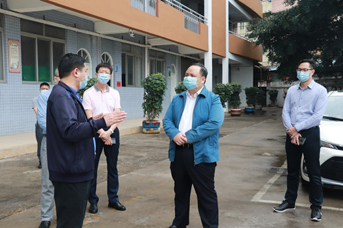 鎮委書記吳潤玲、鎮委委員梁健陽、副鎮長朱洪光等人在鎮宣教文體局負責人、有關學校負責人等陪同下,前往望牛墩鎮望牛墩中學、育林學校等公民辦學校實地視察督導。每到一所學校,均詳細聽取學校關于學生返校疫情防控準備工作介紹,詳細檢查了學校飯堂消毒工作、宿舍安排、臨時觀察室設置及防疫物資儲備情況,并要求各學校務必做好應急處置預案,細之又細地為即將到來的開學復課做好最充分的準備。