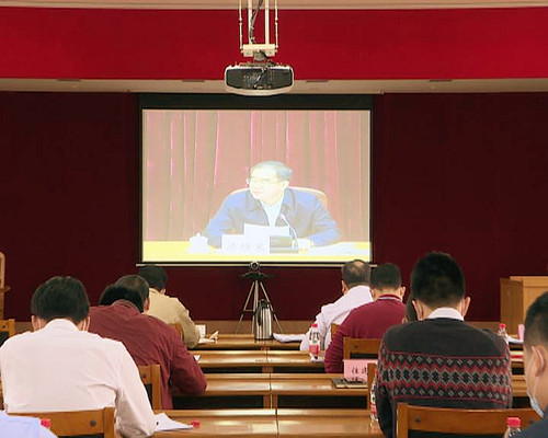 鎮委書記吳潤玲,鎮委副書記、鎮長候選人莫偉鳴,鎮委委員梁健陽等鎮領導,鎮相關機關單位、各村(社區)負責人收聽收看了電視電話會議。