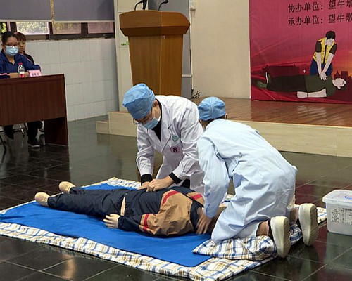 在心肺復蘇競賽中,8組選手們沉著冷靜,配合默契,他們在“模擬人”面前評估周圍環境、判斷患者意識、胸外按壓……從搶救意識、動作要領、規范操作等方面均展現出較高水平的職業素質。