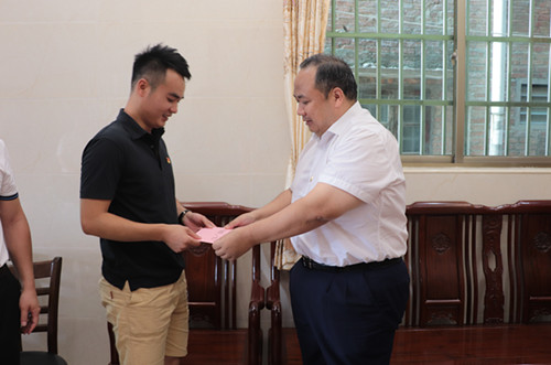 在現役軍人葉炯棠家中,吳潤玲、王暉一行與其家人親切交談,詳細了解葉炯棠在部隊服役情況,感謝他們把兒子培養成為優秀的軍人,為國家的安全和繁榮做出貢獻,叮囑家屬要保重身體,并送上慰問金。