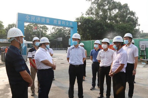 在望牛墩鎮中梁拾光公館工程建設現場,王長青詳細了解了工程的施工進度,認真查看安全施工情況,細致詢問工程負責人安全主體責任落實以及工地各項安全措施的執行情況。